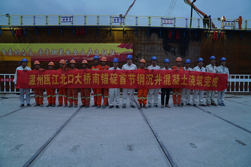 瓯江北口大桥南锚锭钢沉井混凝土浇筑完成