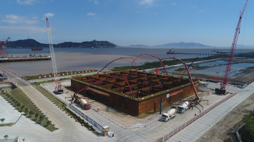10月20日,温州瓯江北口大桥南锚碇钢沉井混凝土浇筑顺利完成,标志着南锚碇沉井施工进入崭新阶段。