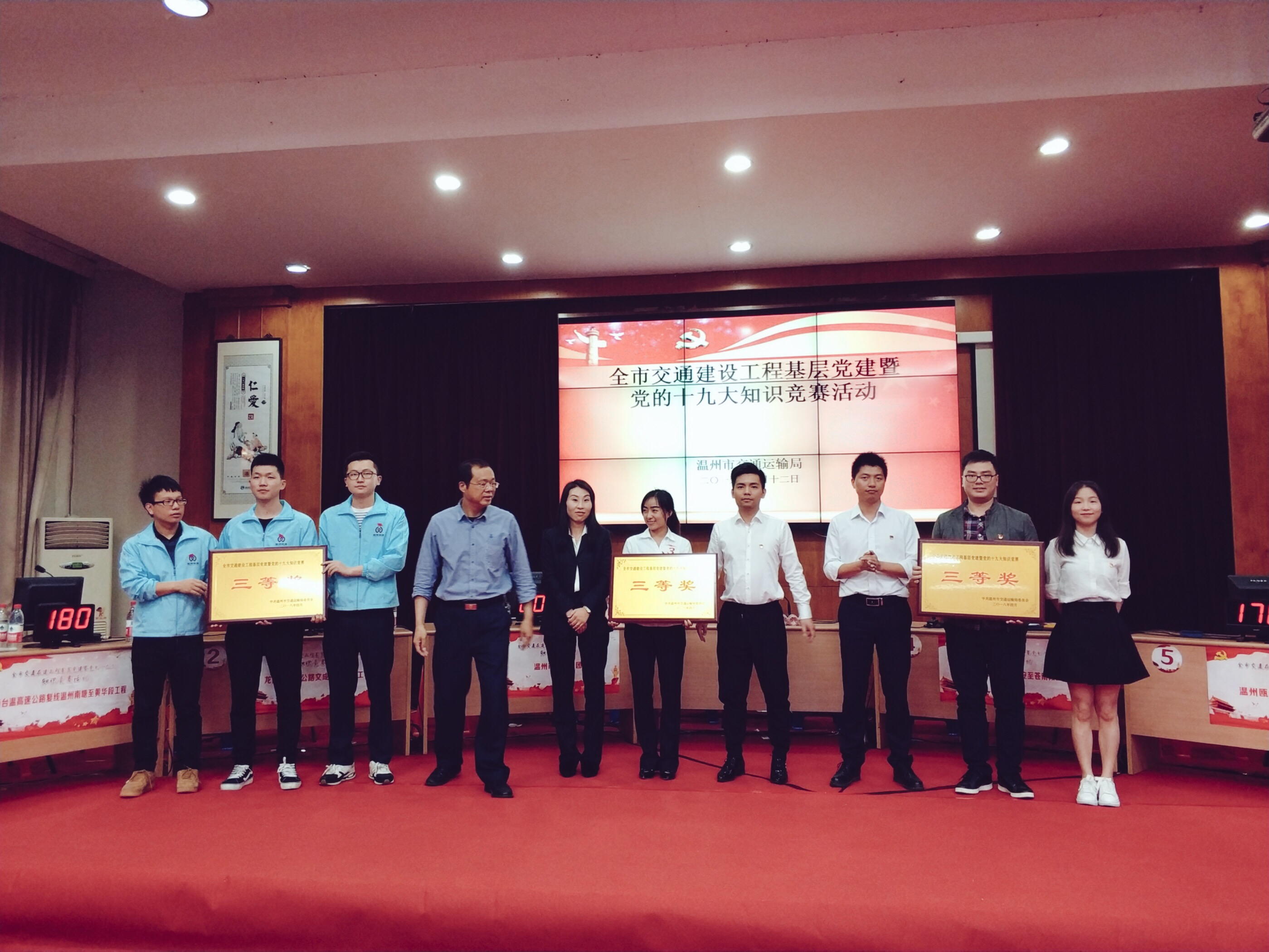 4月12日,瓯江北口大桥工程拓展型党总支参加全市交通在建工程基层党建暨十九大知识竞赛,并荣获三等奖。