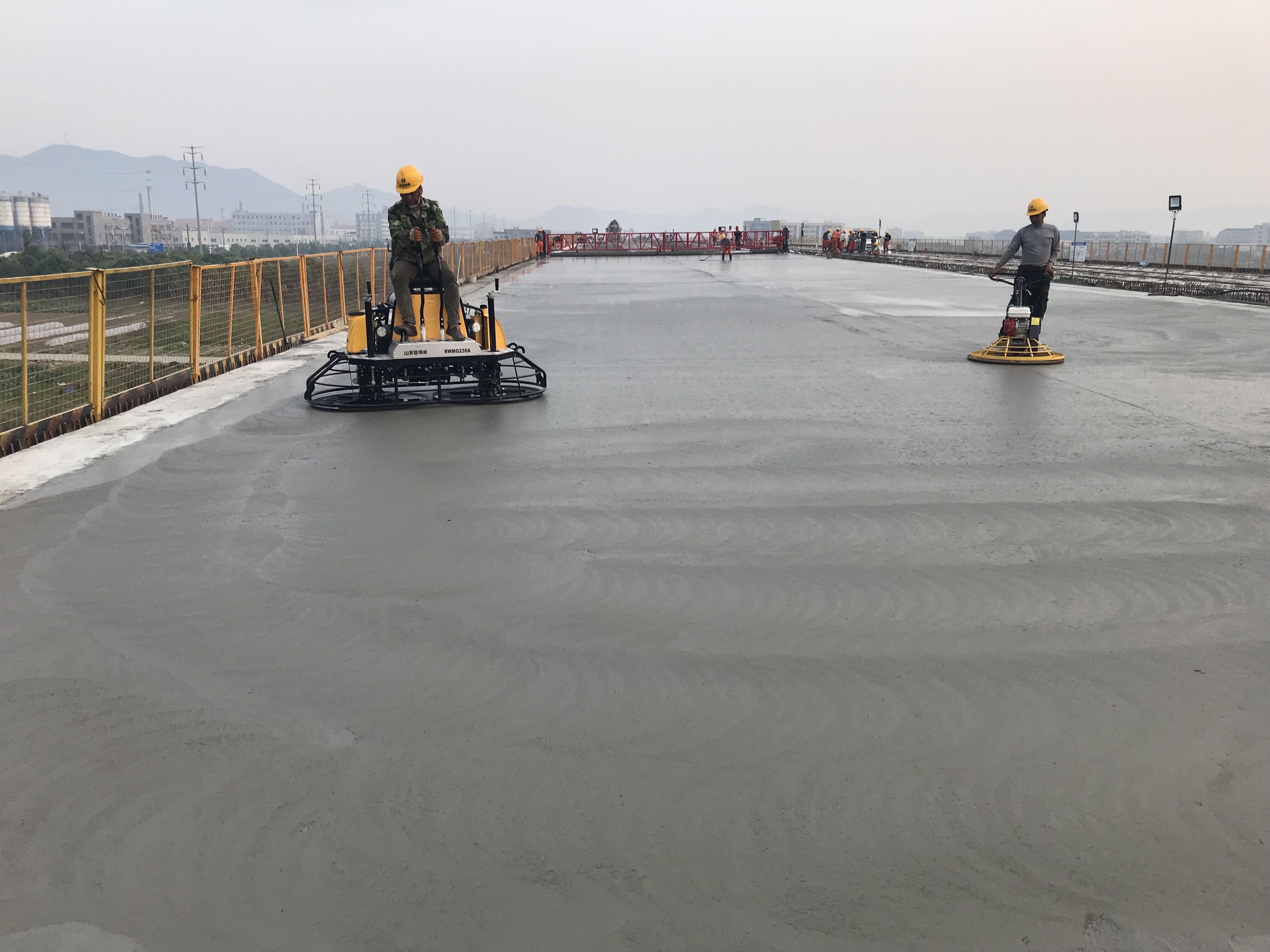 4月15日,经过7个小时紧张有序的施工,甬台温复线平苍段工程5标芦浦高架1号桥桥面铺装首件工程顺利完成施工,拉开了该项目水泥混凝土桥面铺装施工的序幕。
