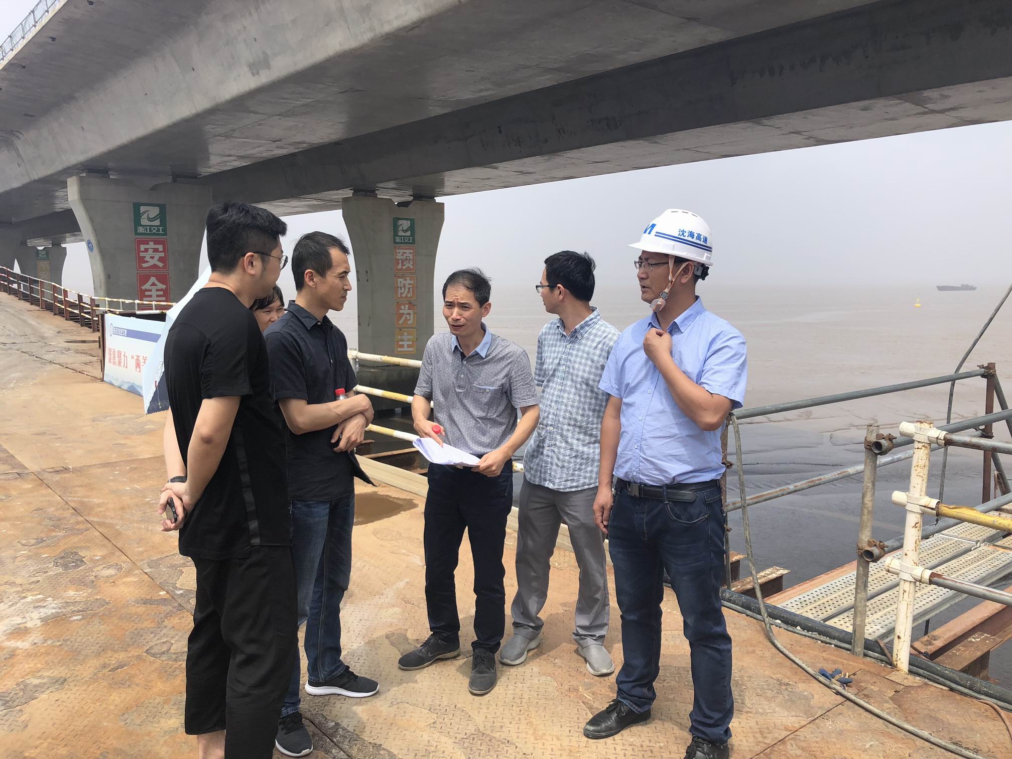 为加强水行政许可项目的监督检查,确保汛期河道防洪安全,5月30日下午,省河道总站对甬台温高速公路复线灵昆至阁巷段工程涉河涉堤建设情况开展专项督查。沈海公司姜玉龙及施工单位相关人员等陪同督查。