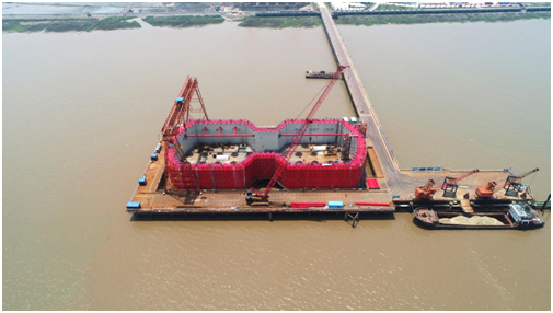 南塔承台钢吊箱正式在北口大桥亮相
