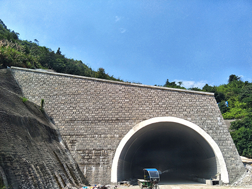 6月18日,金山隧道左洞进口与右洞出口端墙式洞门砌筑完成,至此,金山隧道所有分项工程全部施工完成。