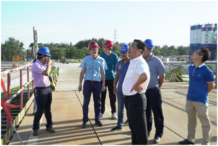 方勇军对北口大桥施工现场进行了实地查看,并听取了现场负责人有关防御台风的工作情况汇报。方勇军要求,各施工单位要充分认识此次“玛莉亚”台风“风强、浪高、速快、雨大”的特点,吸收近年来防御台风工作经验教训,全面、周密地做好各项防御工作。