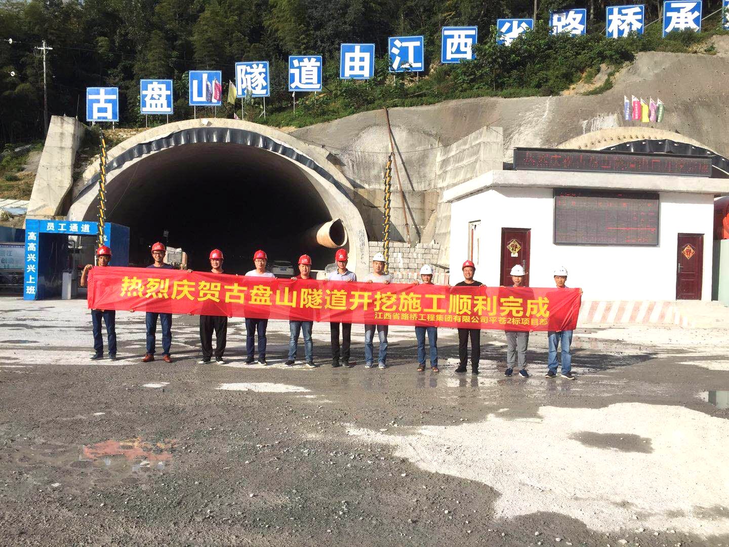 古盘山隧道为左右分离式隧道,全长4170米,采用双向六车道标准建设,设计速度为100km/h。该隧道由甬台温复瑞安至苍南段工程1标和2标共同承建,采用两头同时对打的方式开挖。自开工以来,沈海公司精心部署、统筹安排,强化施工过程控制,狠抓工程安全质量;全体员工发扬顽强拼搏,勇于奉献的精神,一路克服诸多困难,历时24个月圆满完成开挖任务。