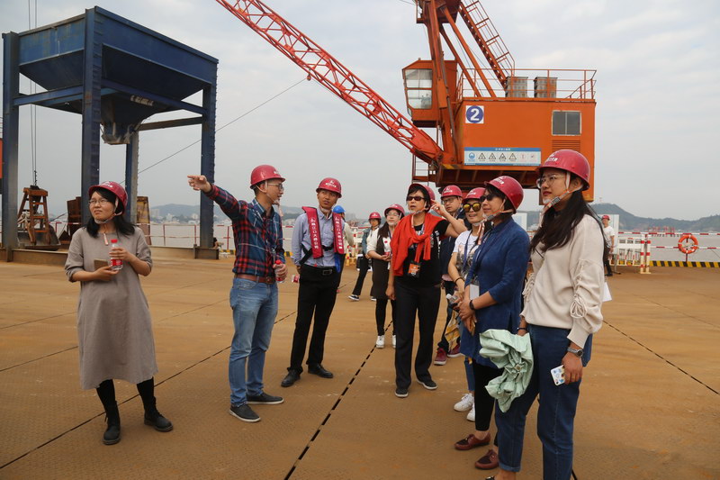 全体媒体记者参观了南塔、南锚碇沉井、中塔沉井等工区及“五型三化”党群服务中心,瓯江口大桥相关人员为记者介绍了项目的社会意义、技术难度及进展情况等。北口大桥井然有序的标化工地现场、走在行业前列的技术创新成果、深入工人心坎的群团服务给记者们留下了深刻印象,北口人打造国家级绿色品质桥梁的精神和各项扎实举措获得了在场记者的称赞。