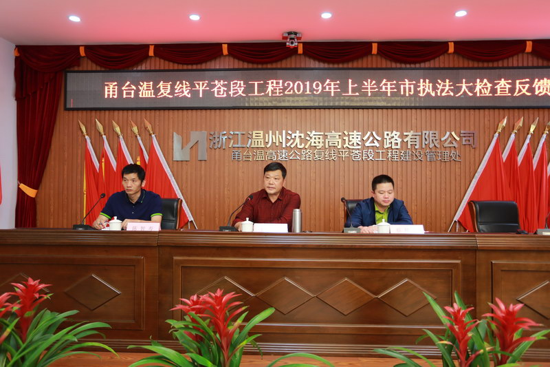 5月6日-7日,市交通工程质量监督局副局长王光达带队深入甬台温复线瑞安至苍南段工程,开展为期2天的2019年上半年全市在建公路工程综合大检查并召开反馈会。沈海公司蔡邦国、陈智寿等陪同。