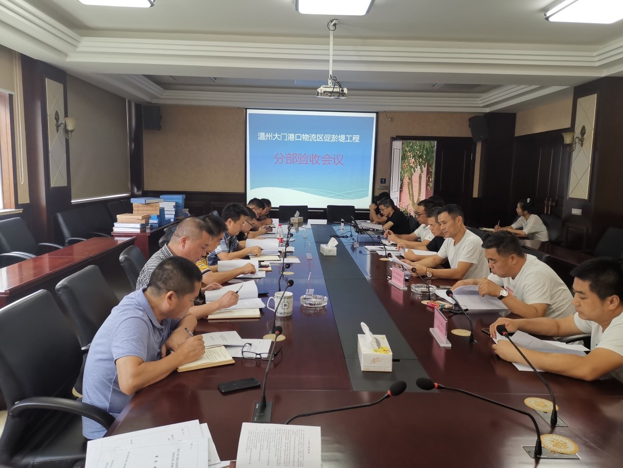 8月20日下午,温州大门港口物流区促淤堤工程分部验收会议在大小门岛公司会议室召开,会议成立了由业主、监理、勘察设计、施工单位代表组成的验收组,并邀请温州市水利局围垦处和质监站的专家与会指导。