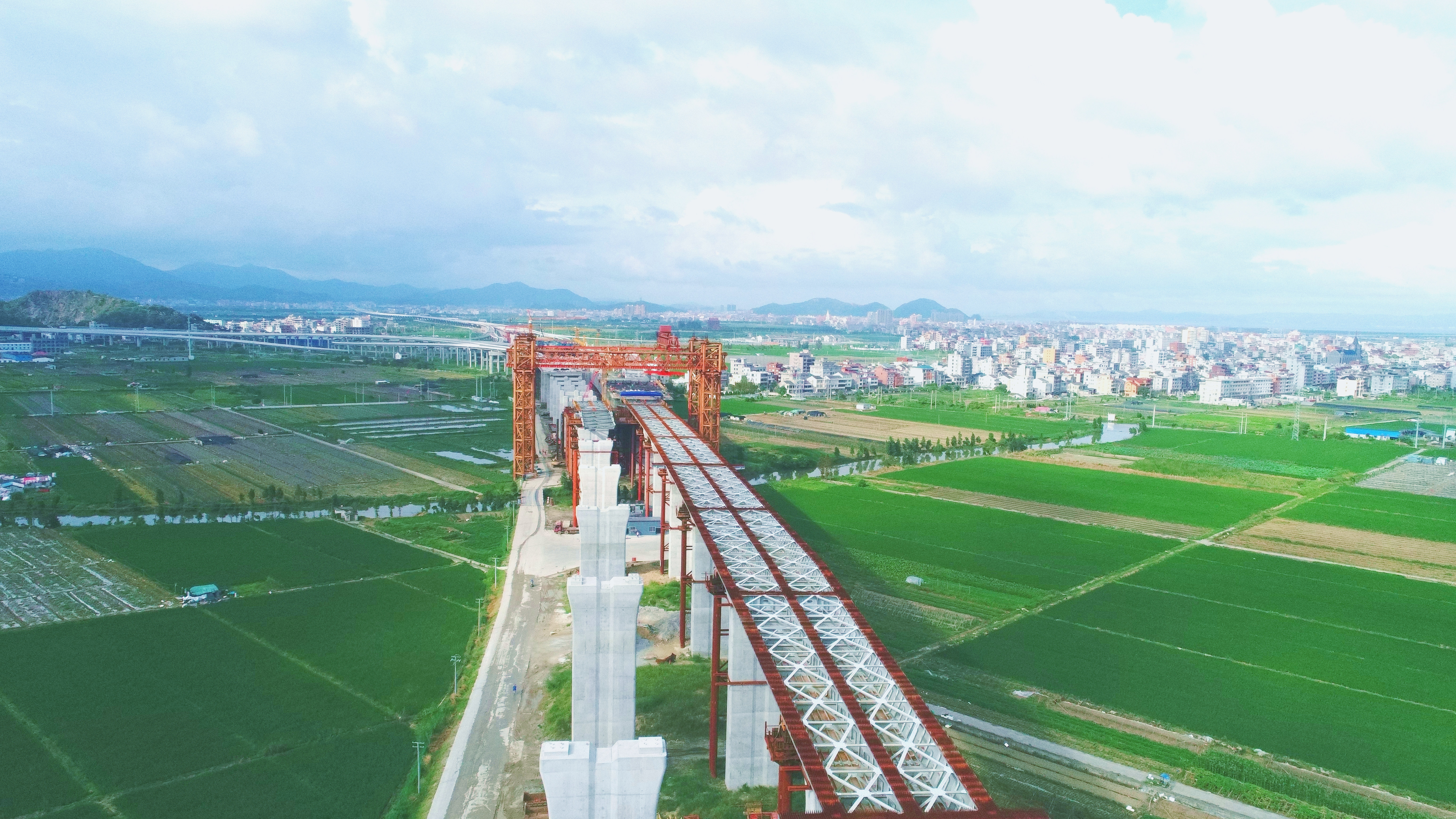 “一切准备就绪,可以开始顶推”。随着一声令下,8月29日,一公局集团温州瓯江北口大桥北引桥第84节段钢梁稳稳落架,左幅顶推过半。站在北口大桥北引桥主线路上,抬眼望去,沿路已架设的钢梁犹如一条“巨龙”,在夕阳的映衬下显得格外壮观,让人忍不住驻足拍照。“在‘豆腐地质’上完成1.9万吨的单、双层钢梁顶推,绝非易事!”北口大桥二标项目总工程师王东伟介绍,“这里原来是一片50-80米的深厚淤泥地,这种软弱地质下如果采用常规满堂支架施工,将投入大量的周转材,对履带吊的动力要求也很高,要花费巨大的成本。”经过大量的调研和方案比选,项目摒弃了常规方案,决定采用钢梁顶推工艺。然而,想要让这万吨钢梁在高空自己“挪移”可没这么容易!北引桥长3.22公里,钢梁顶推施工长达1.01公里,510节节段钢梁含单层、双层结构,顶推梁段设计有纵横坡、曲线段、变截面段和变纵坡段等多种样式,最大顶推长度达560米,这在国内钢梁顶推施工中极为罕见。
