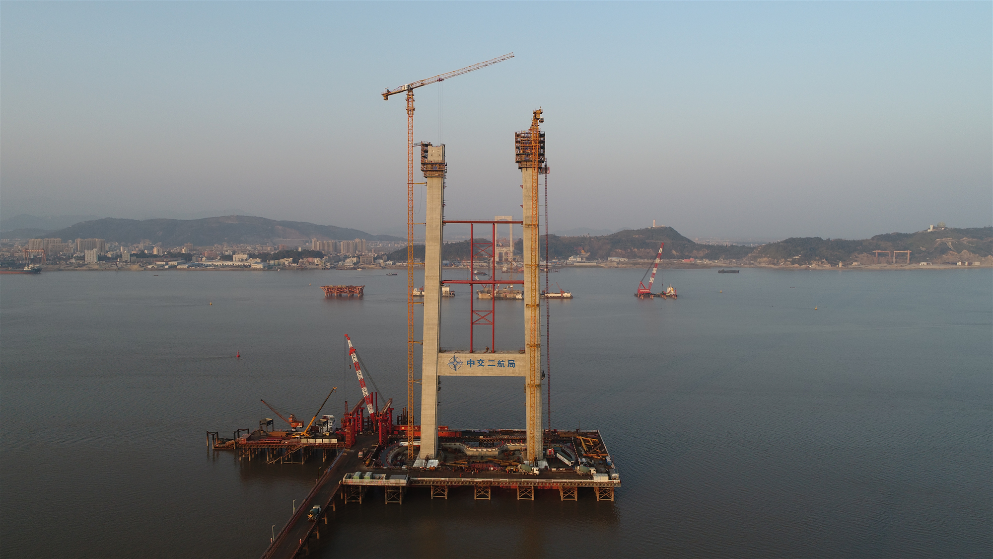 北口大桥南塔塔柱施工完成
