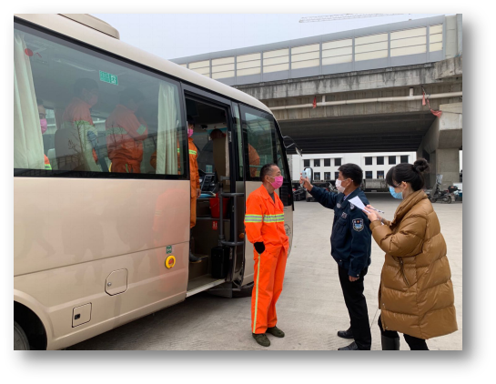 通过上门专车接送员工返岗的方式,既降低了员工赴岗途中出现交叉感染的风险,也从侧面反映公司人性化的经营理念。此外,为确保行程安全,发车前对车辆实施消毒通风,要求驾驶员及乘车工人全程佩戴口罩,员工在上车前、抵达后均需统一测量体温,体温异常者不得上车。一系列举措均显示出养护中心打赢这场疫情防控阻击战的决心,全方位做好复工复产工作。