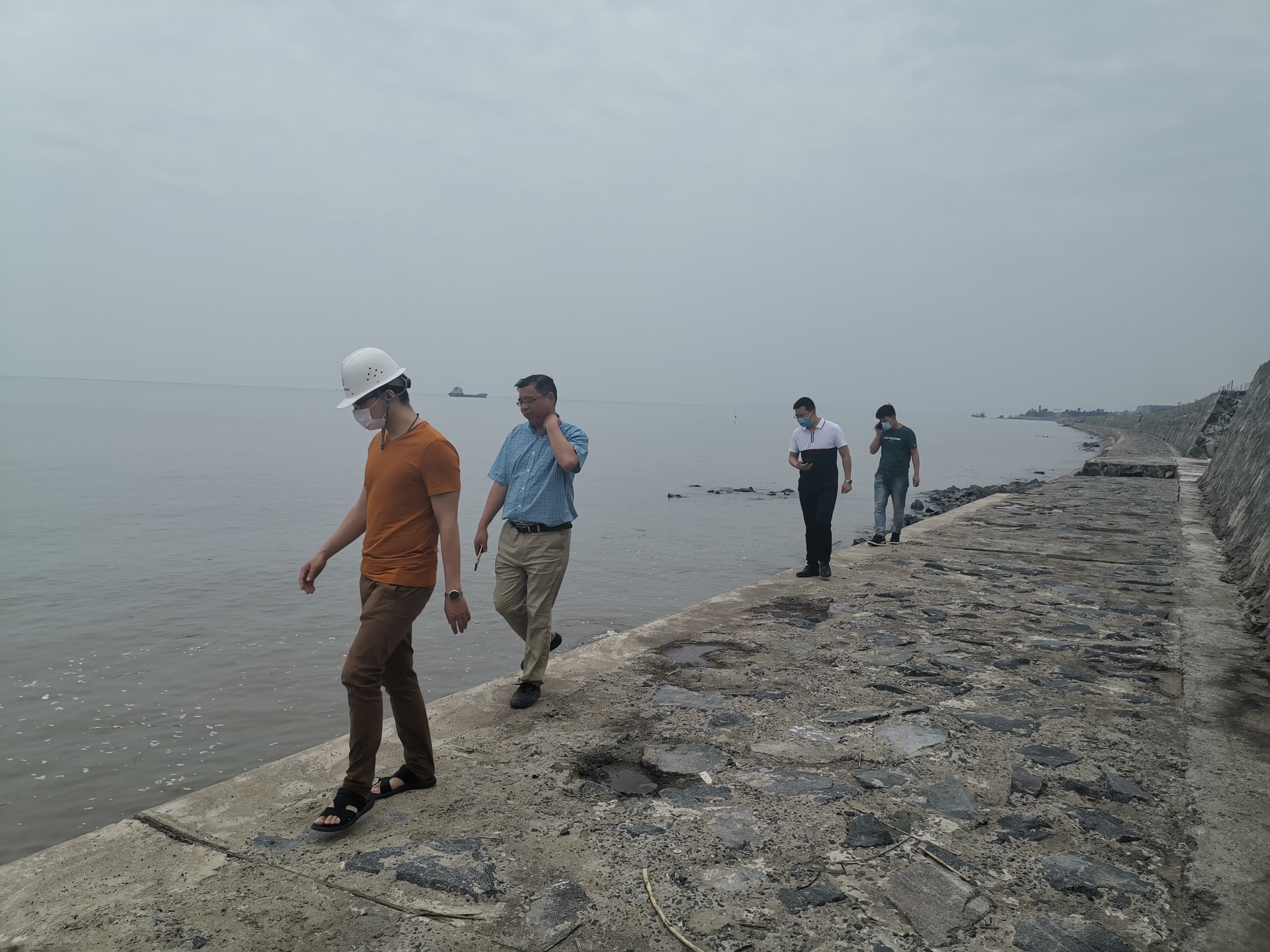 5月28日上午,温州市水利局建设处吴一禾处长带队赴黄岙二期围堤现场,分别查看了下乌仙海堤、绕岛海堤、青菱屿海堤、龙口结构冲刷情况。吴一禾指出,面对全国严管严控围填海的新情况、新形势,大小门岛公司要积极谋求新思路,建议通过海洋生态修复、落实防台防汛措施等途径,对冲刷严重段进行保护性施工,确保海堤安全。