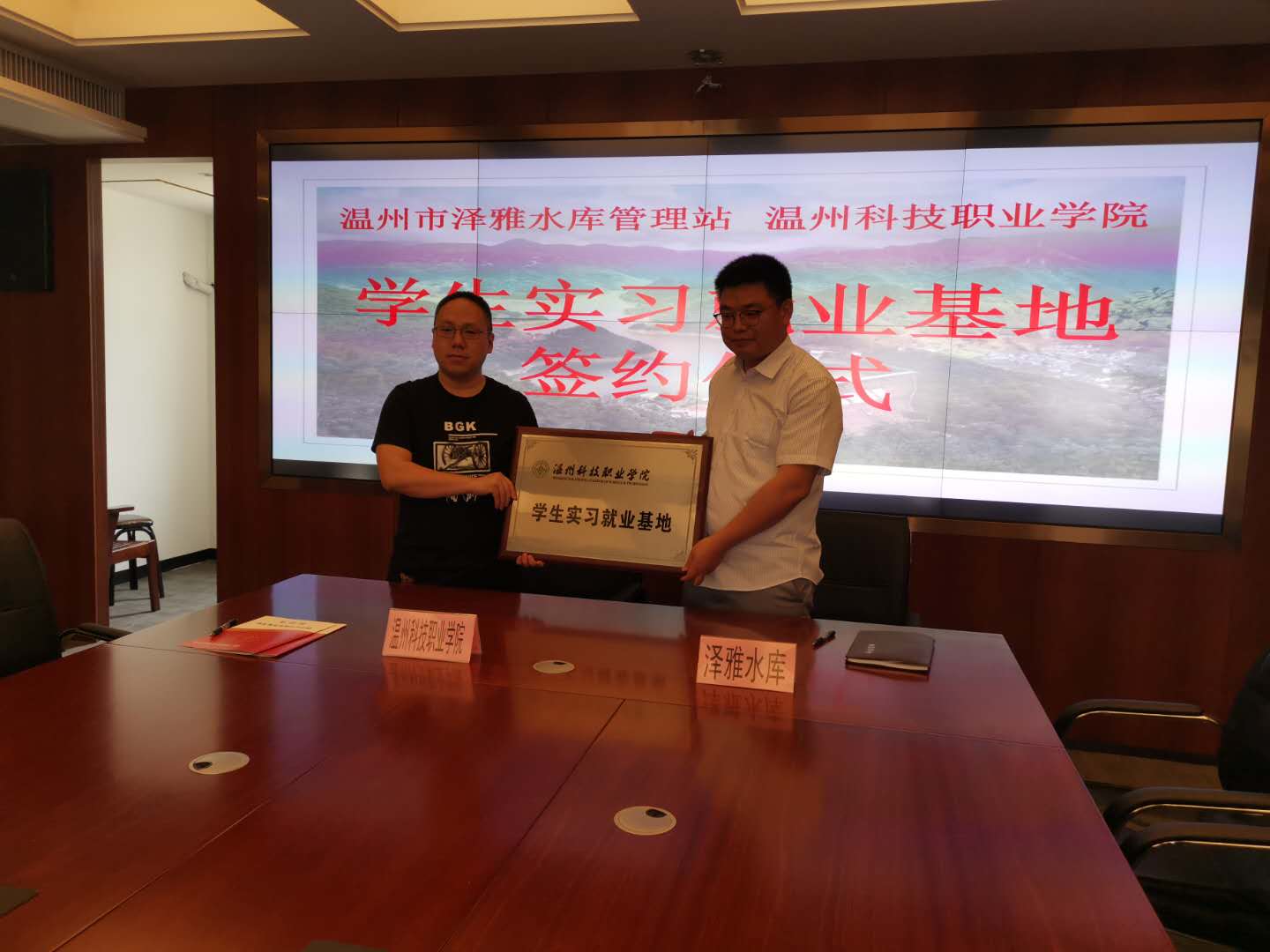 5月8日,温州市泽雅水库管理站与温州科技职业学院签订校外实习就业基地共建协议书。温州市泽雅水库管理站麻青松、温州市水利研究所副所长陈道信(水利专业负责人)参加此次活动。