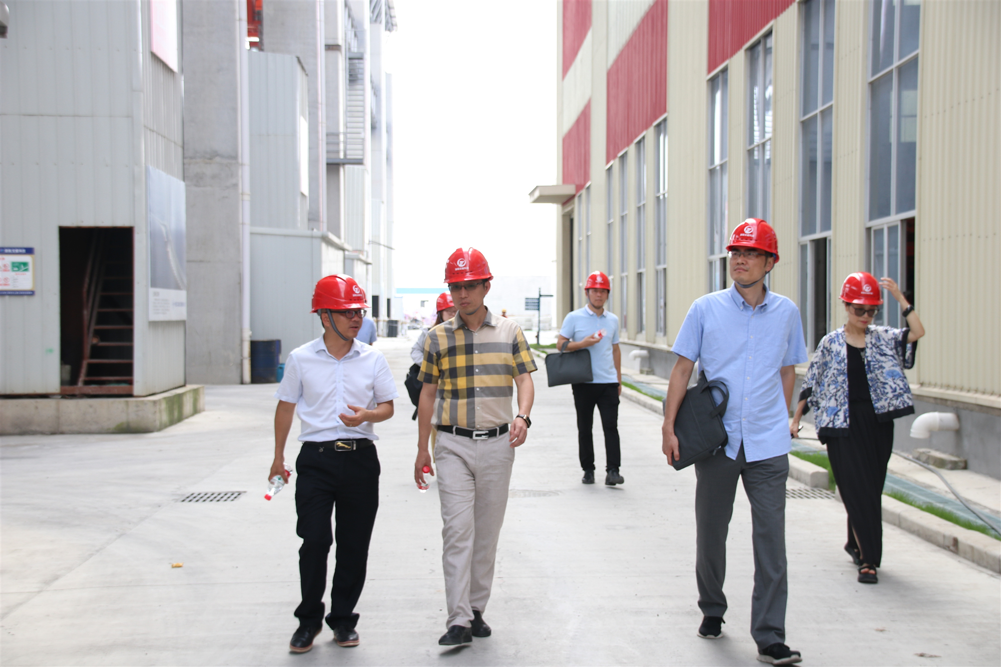 潘贻建一行首先来到浙瓯交建科技公司下属的温州交通城建工业化生产基地营盘基厂区,在公司技术中心负责人的陪同讲解下,实地考察了厂区钢筋加工车间、制梁生产线和重件泊位码头等重点区域,了解了节段梁、桥面板大型预制构件生产流程及工艺情况,随后一行人返回公司进行座谈交流。