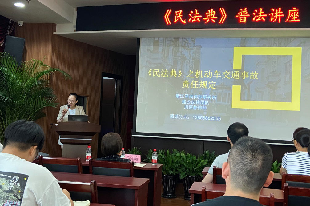 讲座中,泽商律所从与群众利益息息相关的法律条文入手,结合群众生活中常见合同编、人格权编、婚姻家庭编、交通事故责任等问题,深入浅出地进行普法宣传,并对重点法条进行分析讲解,强调工作和生活中需要重点把握的内容,倡导自觉养成学法遵法用法守法的好习惯。