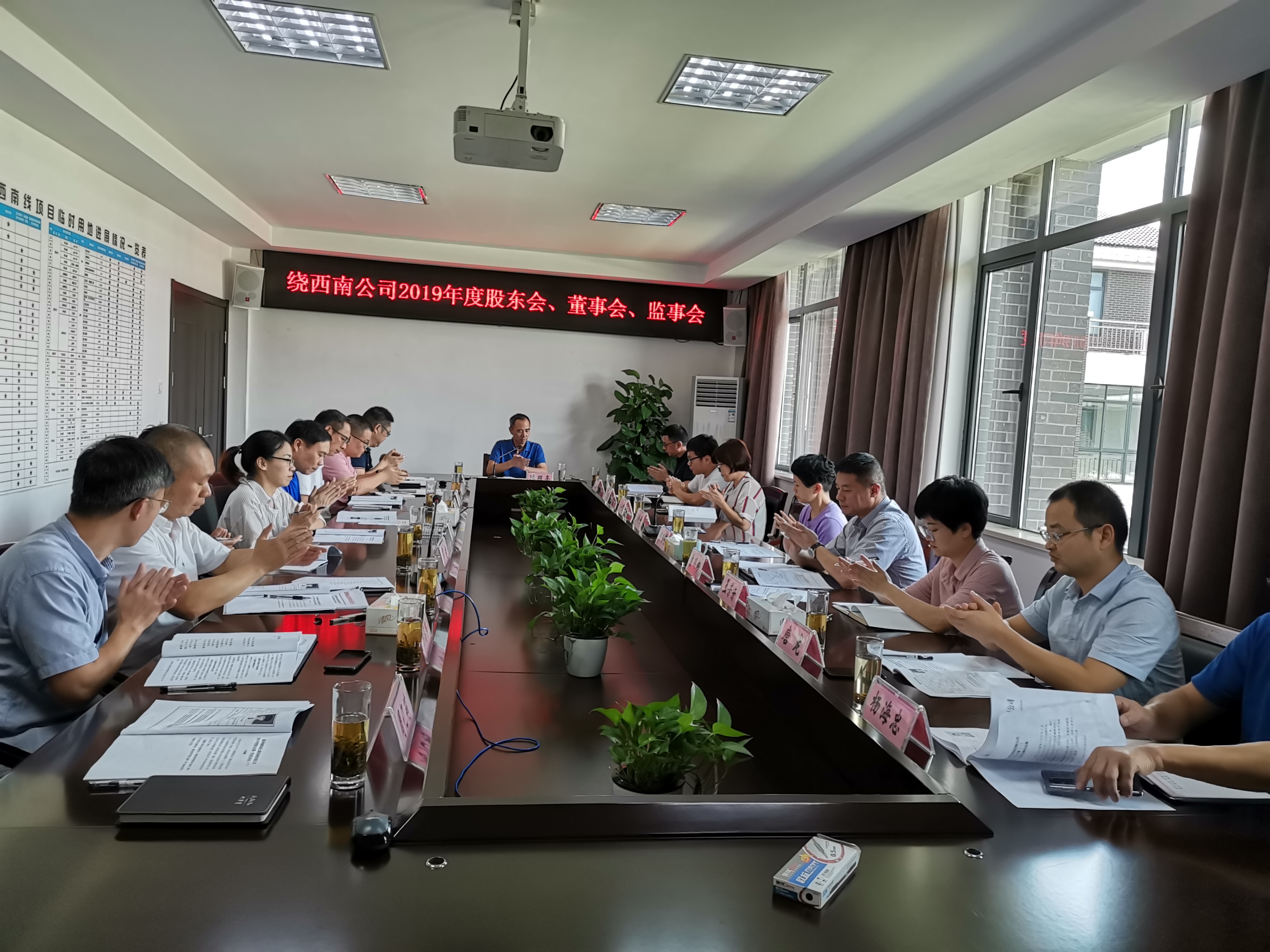 8月21日下午,绕西南公司在二楼会议室召开2019年度股东会、董事会、监事会。会议由陈照亮主持,公司各股东单位代表、董事、监事、领导班子及相关列席人员等20余人参加会议。