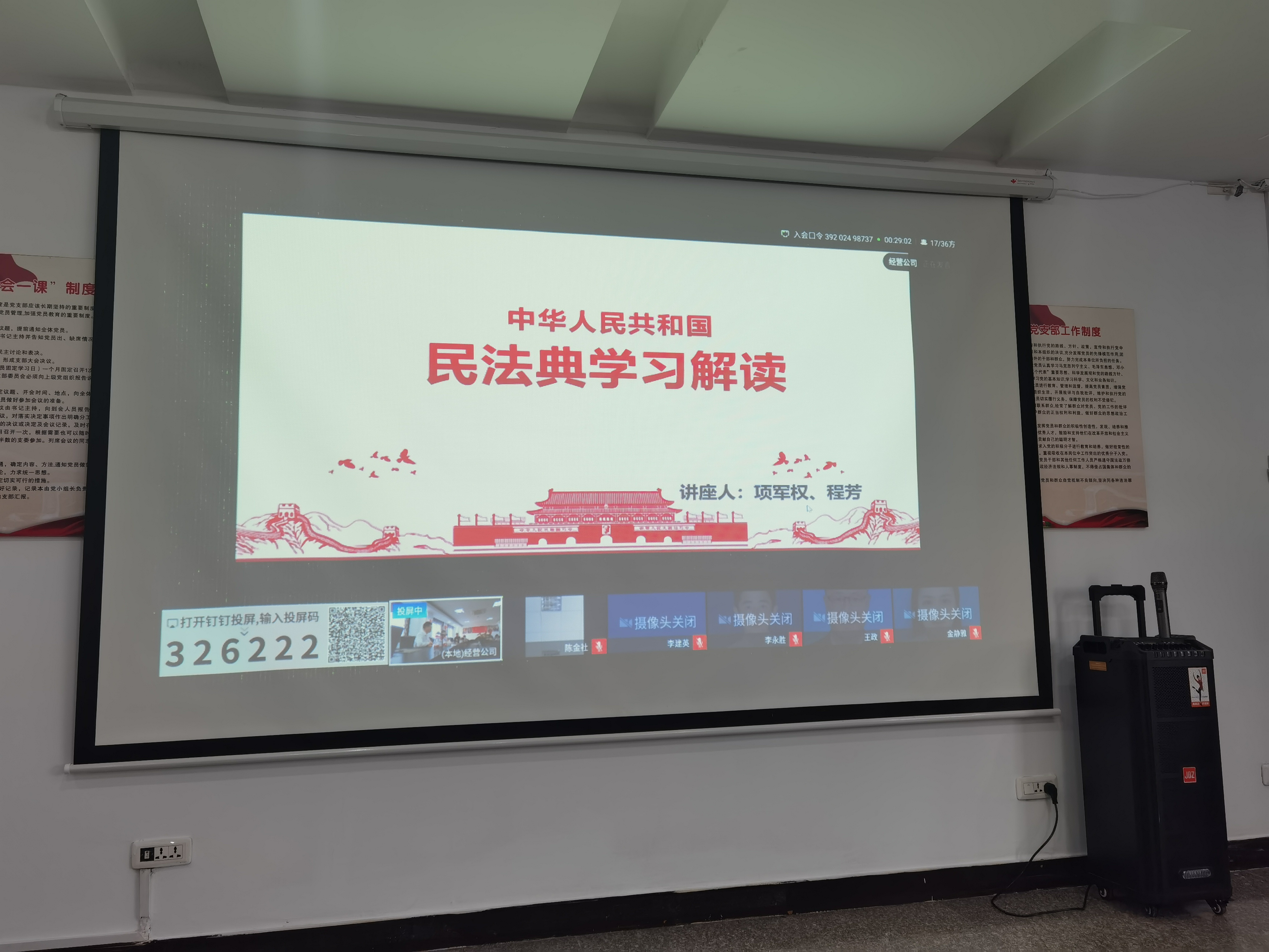 9月25日下午,经营公司举办《民法典》专题讲座。公司全体人员参加法治学习讲座。讲座邀请浙江人民联合律师事务所律师项军权和程芳为公司全体员工进行《民法典》普法宣传。