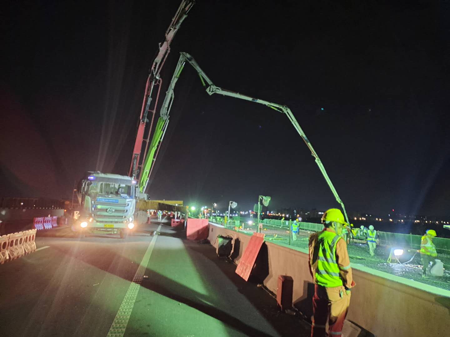 11月4日,用时18个小时,甬台温高速公路复线机场互通首联现浇箱梁顺利完成浇筑,预示着又一新的工作面即将全力推进。