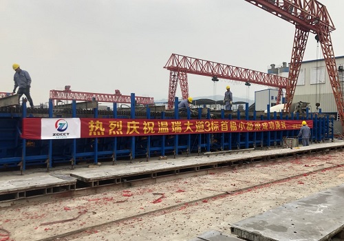 浙瓯交建科技公司温瑞大道3标首件预制小箱梁顺利浇筑