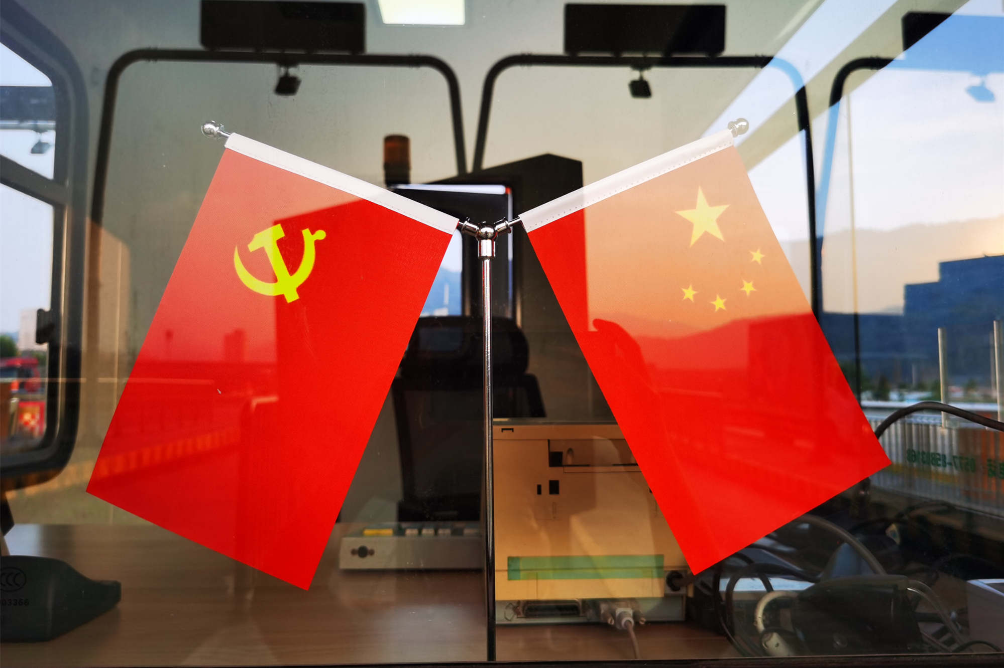 10月1日,运营公司各收费站票亭内均插挂国旗、党旗,收费员佩戴“中国红”口罩,用三尺岗亭内洋溢的那一抹“中国红”,迎接南来北往的每一位司乘朋友,打造美观、靓丽的红色风景线。