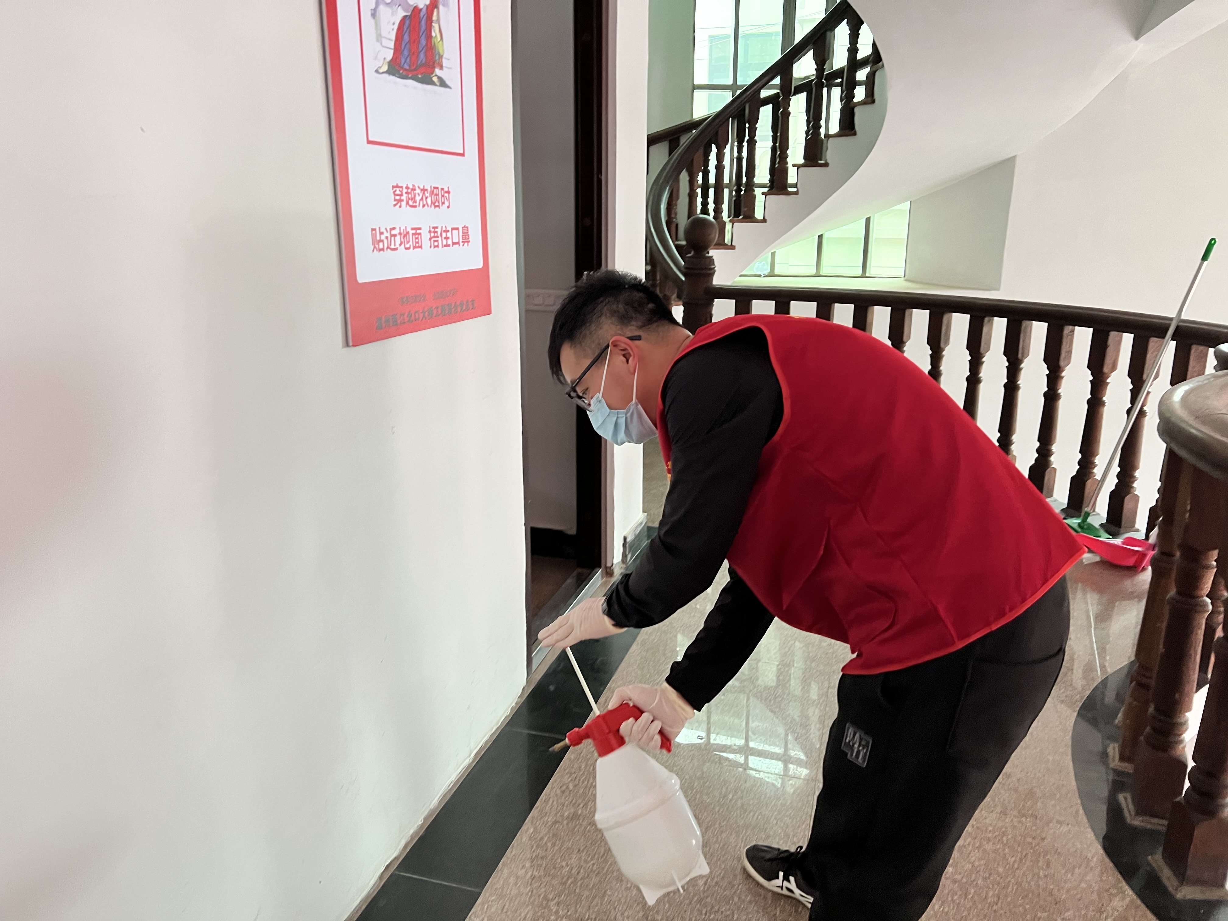 工人们的宿舍位于灵昆镇下辖的村内,志愿者们到达 后向工人们分发了防疫宣传单,宣讲了在疫情期间对于戴口罩、勤洗手、打疫苗等防疫措施的重要性,并逐个排查班组未接种疫苗“加强针”的工人,将应接种人员一一登记在册,并为现场的工人们分发口罩、洗衣粉等防疫物资、生活用品等。此外,志愿者们还深入宿舍内部进行了整体性消杀,在走廊张贴防疫知识的宣传海报。