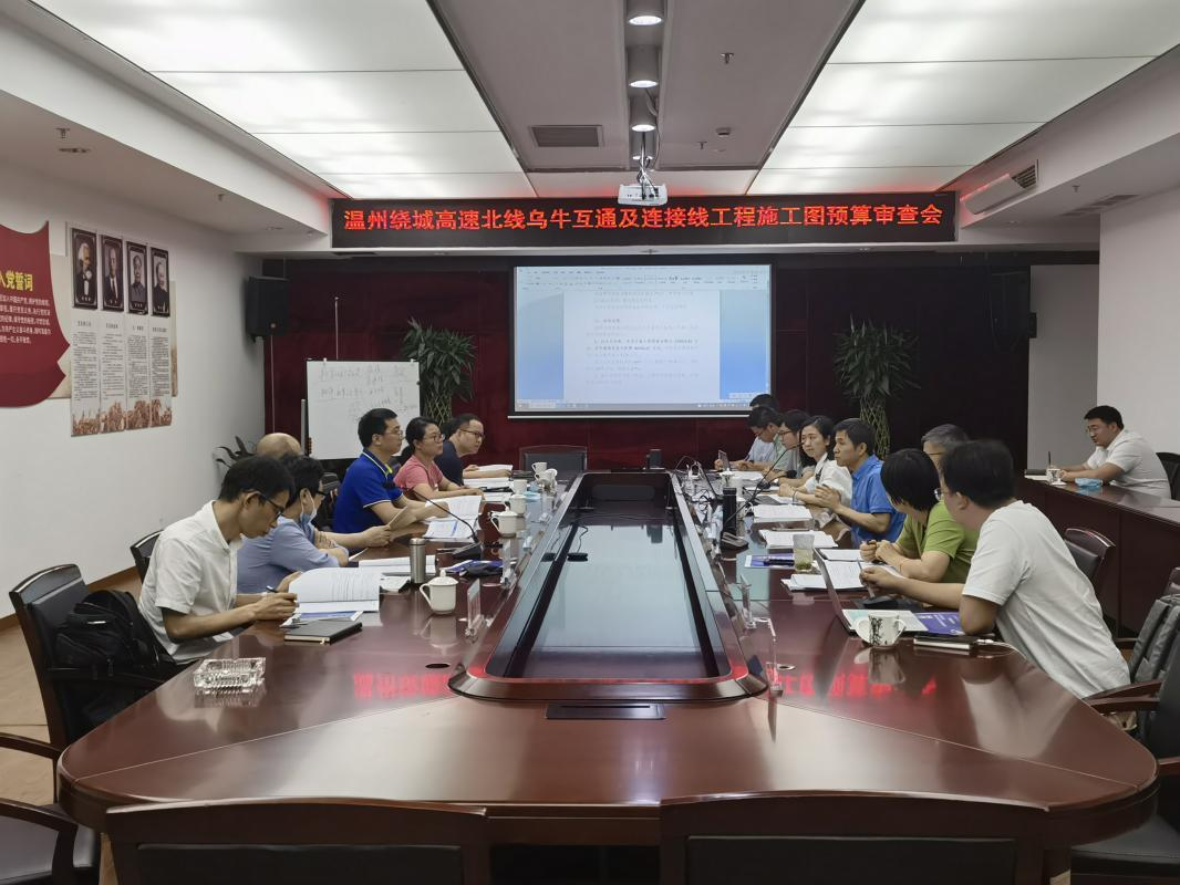 6月19日下午,温州市交通发展集团有限公司在温州组织召开了温州绕城高速公路北线乌牛互通及连接线工程施工图预算审查会。温州市交通运输局、温州市交通工程管理中心、温州诚达交通发展股份有限公司、浙江公路水运工程咨询有限责任公司、浙江数智交院科技股份有限公司、中交第一公路勘察设计院研究院有限公司、浙江交工集团股份有限公司等单位代表,及特邀专家出席了本次会议。