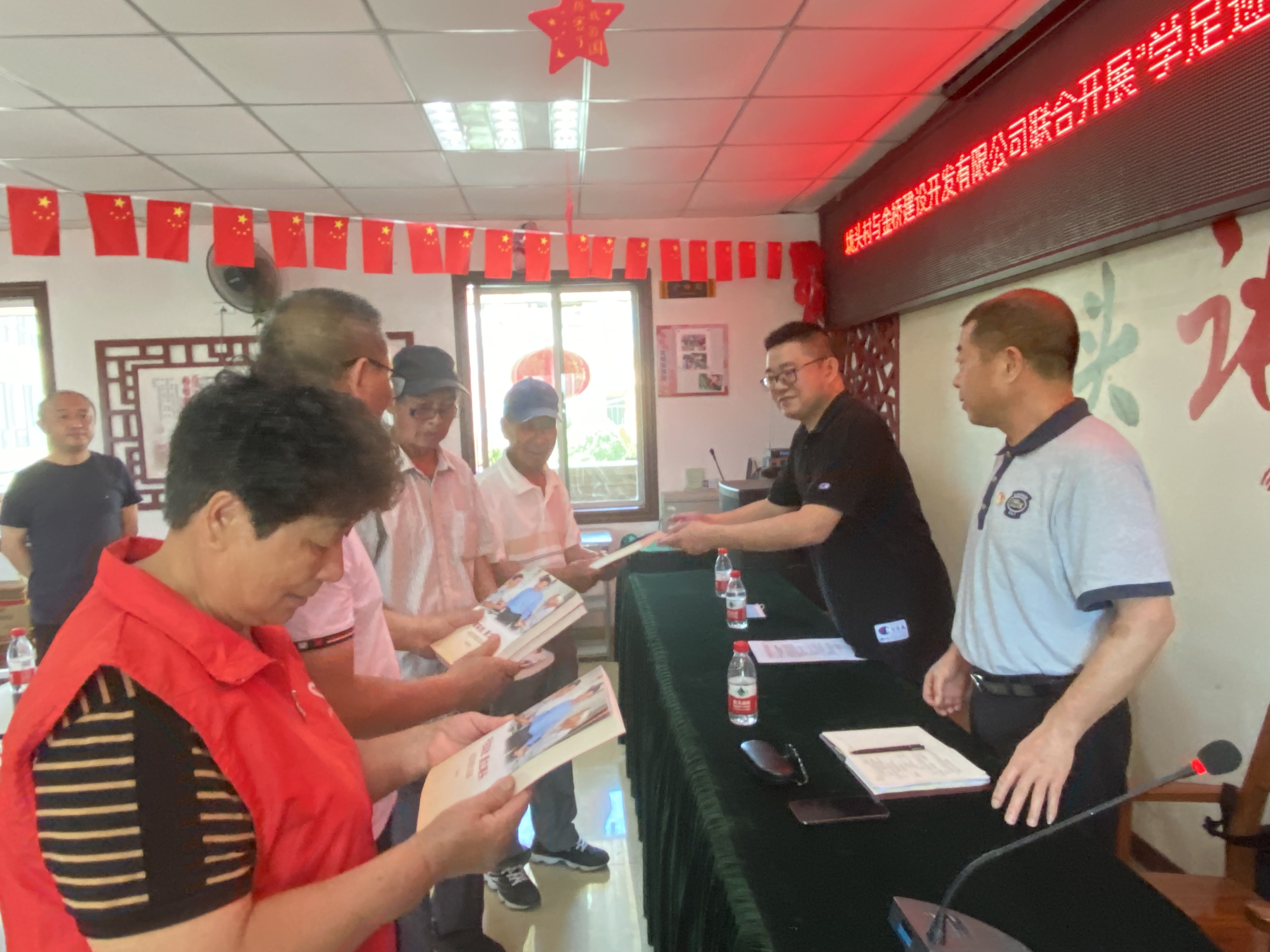 为学好用好《习近平浙江足迹》,深刻感悟习近平总书记在浙江确立的精神坐标,同时进一步加强村企沟通促进和谐发展,为珑头湾项目开发建设创造良好环境,“七一”前夕,金桥公司与洞头区东屏街道垅头村联合开展“学足迹 送清凉 共建促发展”主题党日活动,切实将学习成效转化为为民服务、干在实处的强大动能。房开公司党总支委员、总工程师周建武,金桥公司及垅头村党员和部分志愿者参加了活动。