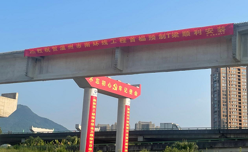 7月22日上午,南环线工程(龙霞路-温州南枢纽桥梁工程)“首片”长30米、重约30吨的预制T顺利吊装完成,标志着该项目建设正式进入上部结构施工阶段。