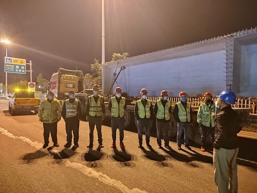 大型构件安全运输工作是浙瓯交建科技公司重要的安全生产工作任务,须严格排查各类安全隐患,对夜间运输过程中存在的隐患问题要做到零容忍,发现一起排查一起,坚决防范安全事故发生,确保二十大期间的夜间运输安全。