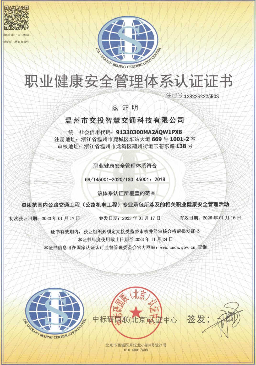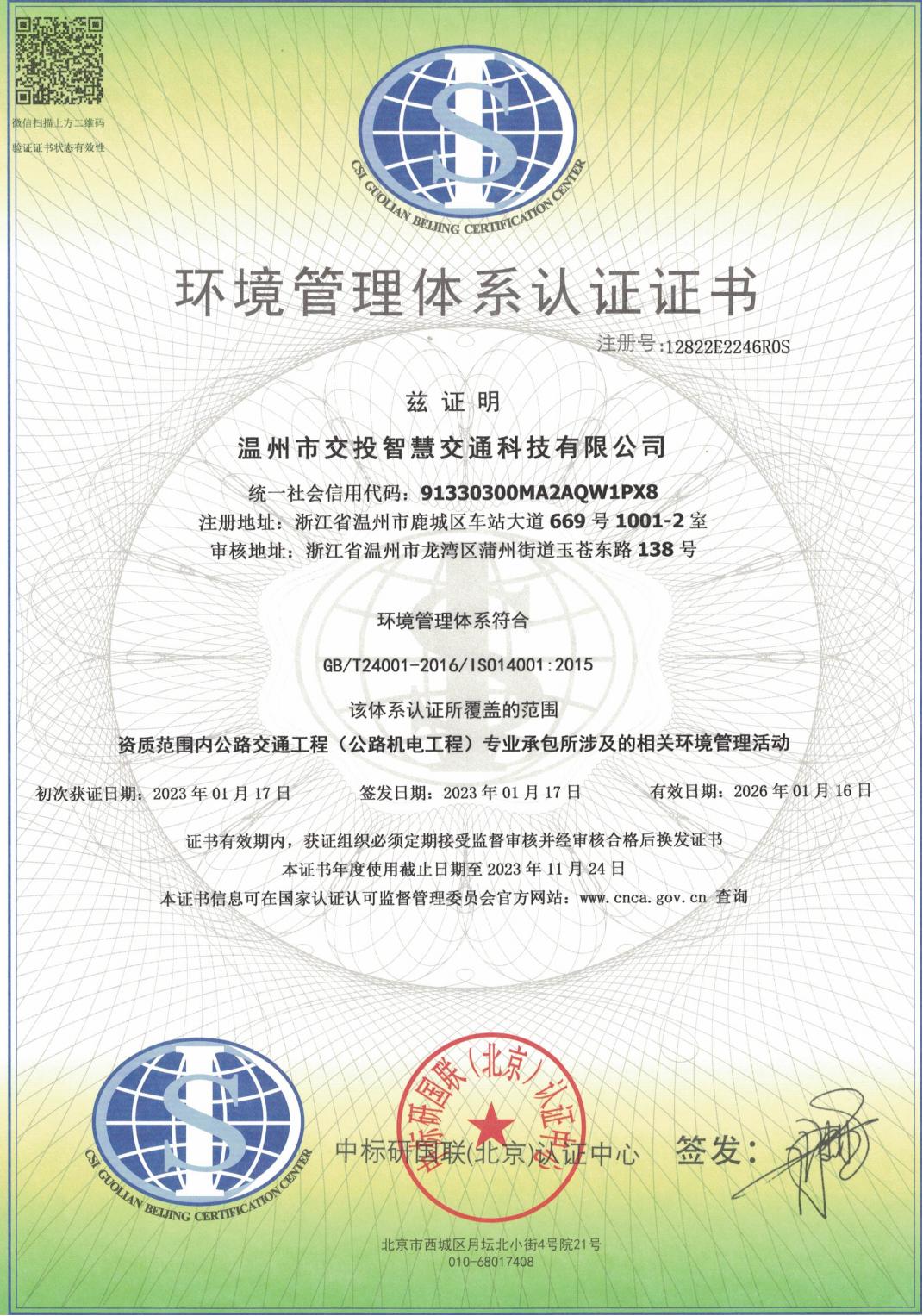 近日,温州市交投智慧交通科技有限公司顺利通过中标研国联(北京)认证中心的专项审核,正式获得质量管理体系、环境管理体系、职业健康安全管理体系“三体系”认证证书,这标志着温交科公司在精细化、规范化、标准化管理上迈上了新的台阶。