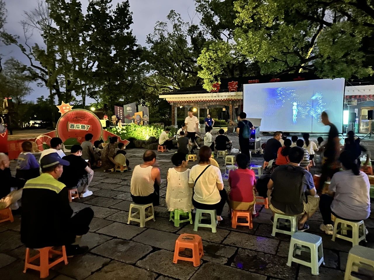 夜幕降临的瓯江畔,星空下的江心屿,电影屏幕亮起,“城市星空电影趴”陆陆续续坐满了人。活动现场,星河物业志愿团队为观影游客们精心准备了解暑西瓜、小板凳和蒲扇。观影过程中,随着剧情的发展,大家时而拍掌称快,时而感动落泪,仿佛又回到了那个战火纷飞的年代,这不仅仅是一场电影的艺术享受,更是一次爱国情怀的洗礼。“太激动了,好多年没看过露天电影了!”“像是一秒穿越回小时候,这样坐在一起看露天电影太有感觉了。”现场观影民众纷纷竖起大拇指。