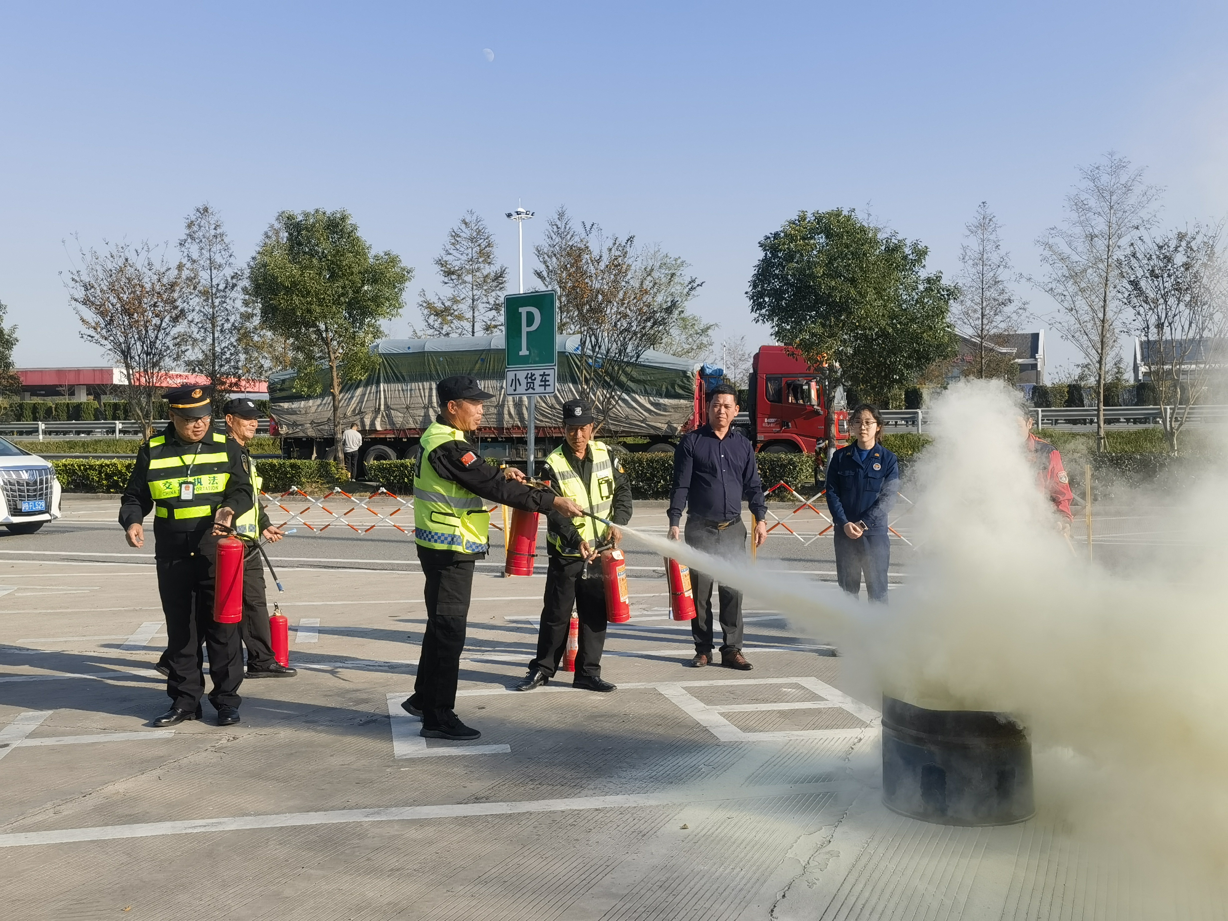 在培训老师的指导下,现场相继开展包括模拟火情、灭火扑救、火灾逃生等方面的消防演练,随后参与消防演练的人员排队参与逃生帐篷体验。“逃生帐篷”内设有隔断墙,将帐篷内空分隔成迂回曲折的走道空间,并分开设置1个进口和1个出口,进出口上设有遮光用的门帘,具有封闭、黑暗、浓烟等特点让人有身临其境之感。在烟雾缭绕的帐篷内模拟感受火灾发生时的现场状态,按照帐篷内的标识找到正确的道路,最后顺利地从出口“逃生”。本次活动吸引过往司乘人员驻足观看学习,切实增强群众的消防安全意识,提高消防安全防范技能。