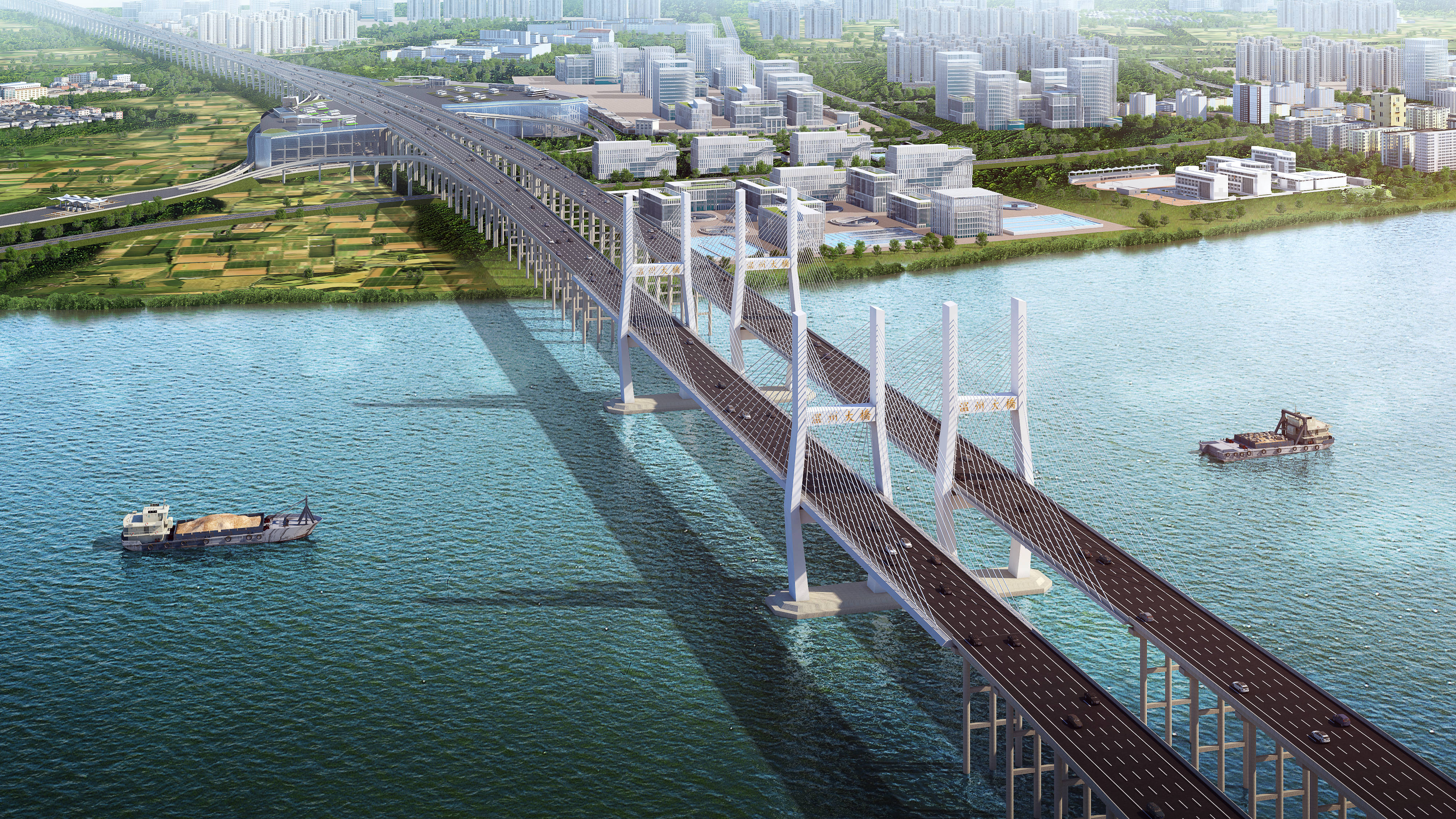 温州大桥北航道桥改扩建施工右线桥为直接利用老桥,主桥段全桥斜拉索更换,上下部结构进行加固处理;左线桥为新建双塔双索面叠合梁斜拉桥,桥跨为540米,其中270米主跨为瓯江北汊航道,通航3000吨级船舶。