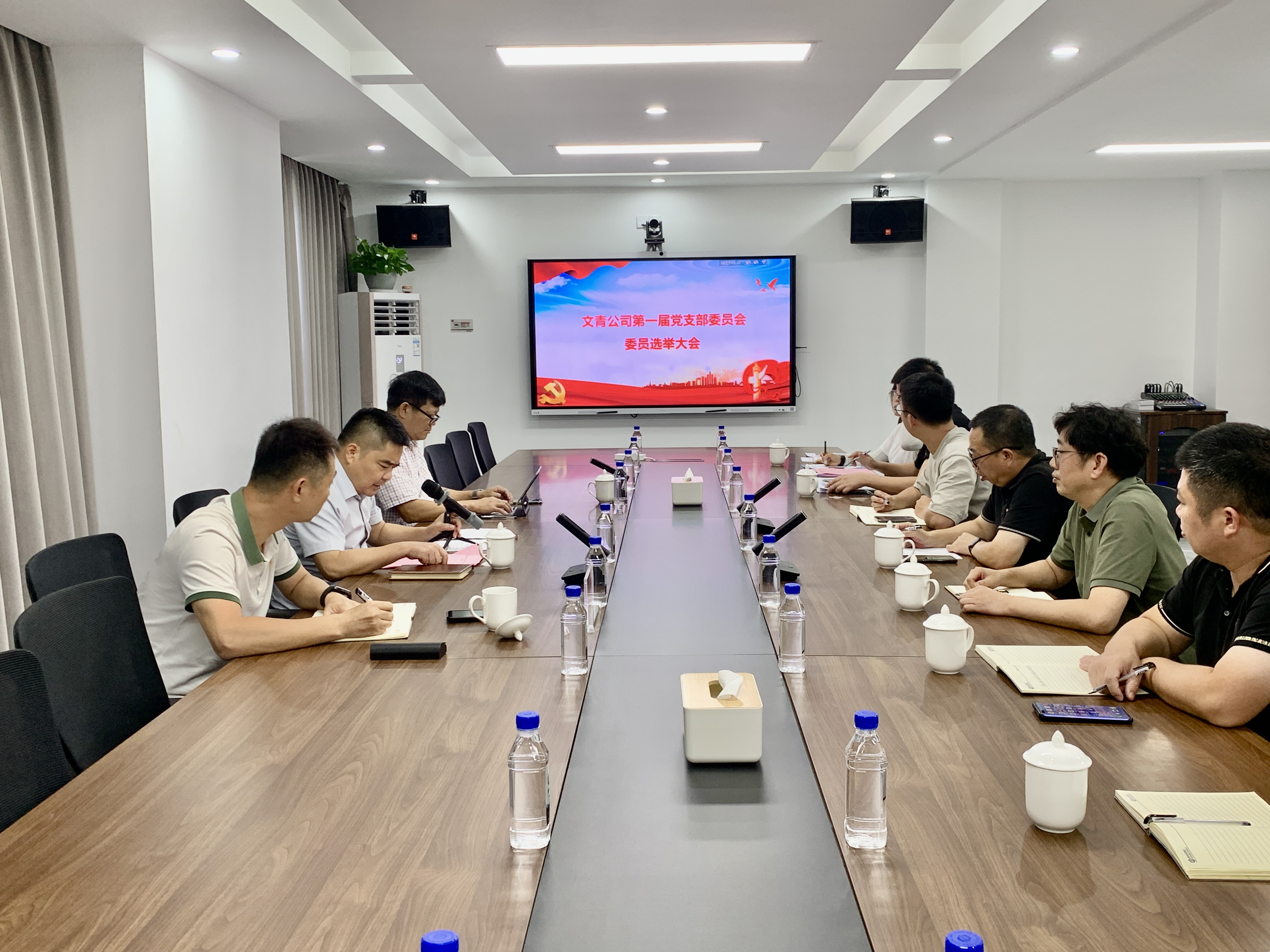 经集团党委批准,文青公司党支部于8月29日召开全体党员大会,选举产生第一届党支部委员会。会议由文青公司董事长、总经理覃毅宝主持。