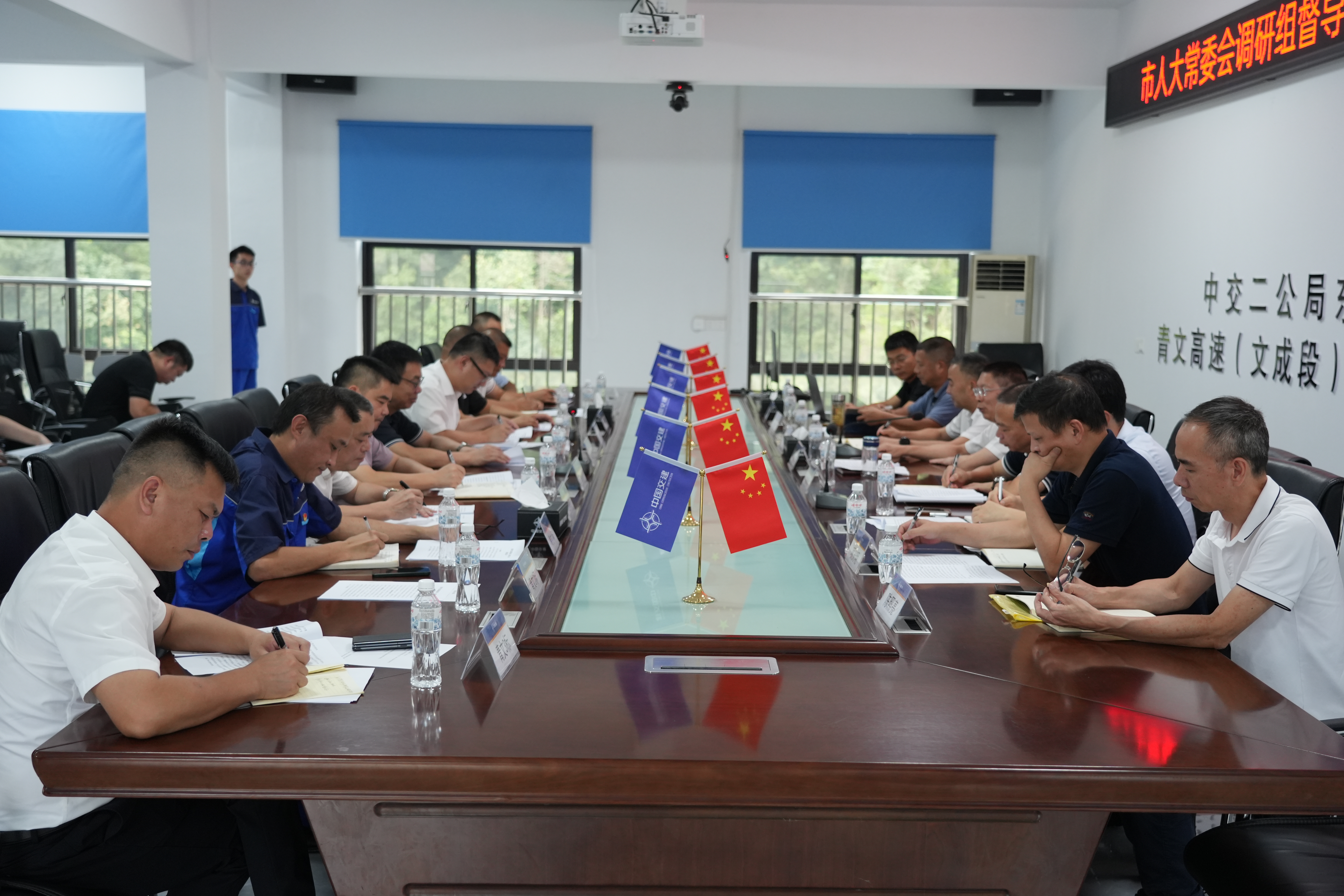 2024年9月6日,温州市人大常委会党组副书记陈建明一行赴文青高速督导项目建设。温州市交通局副局长苏善夫,温州市交通局综合交通前期管理中心主任项庆明,best365足球官网董事长翁结群、纪委书记郑书讯、副总经理潘济及相关人员参加。