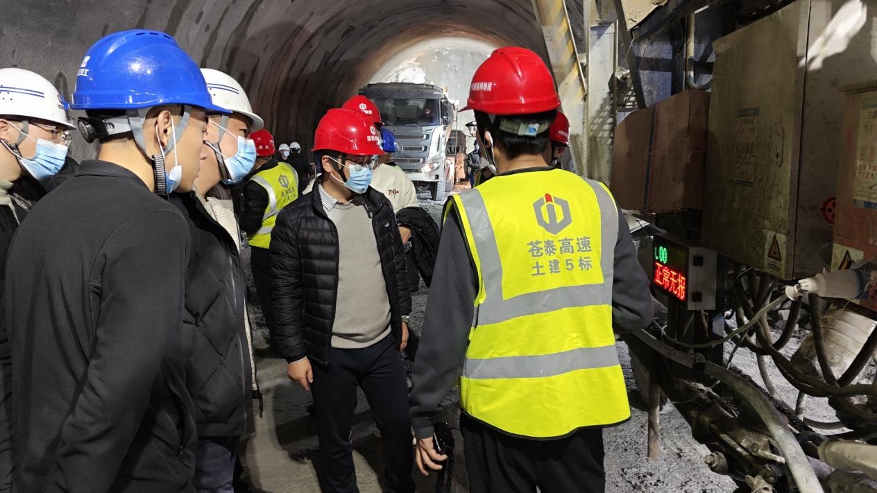 会议由承建方苍泰5标项目经理陈帅主持,他对各位参会人员的到来表示热烈欢迎。在隧道观摩学习环节,苍泰5标技术负责人分别介绍了衬砌外观质量提升的历程、纵向排水管安装细节、仰拱填充层施工要点以及隧道初支喷砼平整度控制关键因素。从施工工艺、材料选择、设备应用等方面进行了全面讲解,结合实际工程展示了具体的操作方法和效果。现场气氛热烈,参会人员受益匪浅。