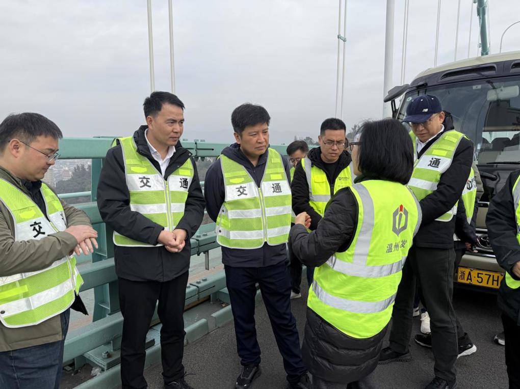1月22日,交通运输部公路局养护处处长杨亮一行赴温州交发集团运营公司参观调研,浙江省公路与运输管理中心养护处处长张慧昕、温州市交通运输局总工程师陈亮、温州交发集团总工程师叶剑可、温州市公路与运输管理中心副主任陈然及相关人员陪同。