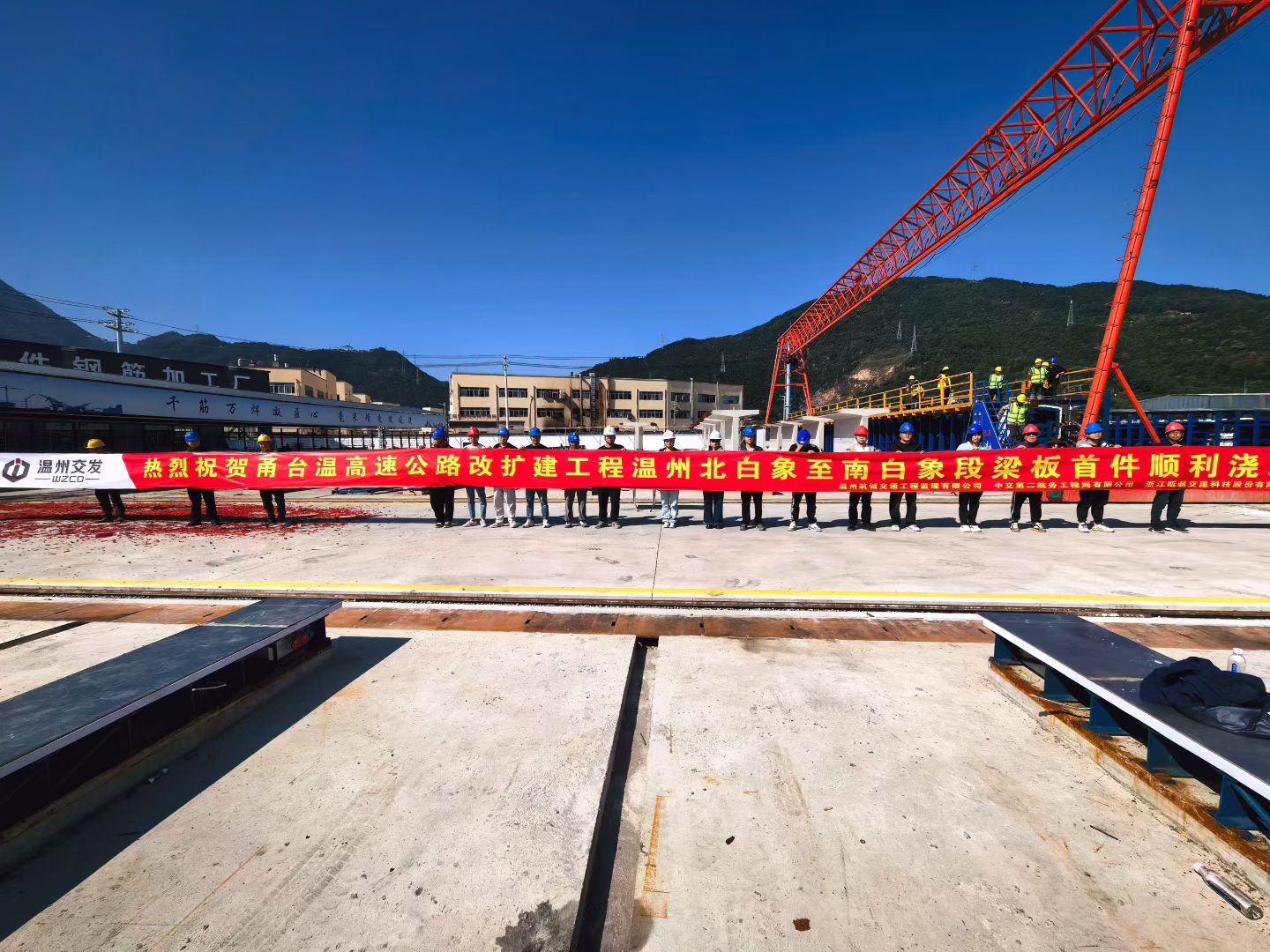 近日,best365足球官网瓯越交建公司瓯海梁厂首片预制梁顺利完成浇筑,标志着该梁厂正式投产,为后续规模化释放产能、保障甬台温高速改扩建南白象至北白象温州大桥段等重大项目梁板供应筑牢坚实基础。