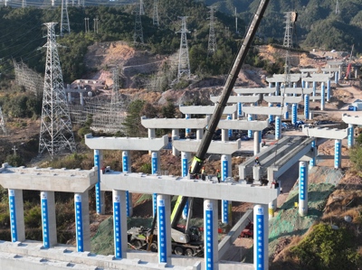 为确保首件工程顺利完成,项目团队超前谋划、精细组织,从技术方案、资源调配、过程控制及安全防护等方面全力保障。一是方案先行,科学筹划筑根基。项目成立专项攻坚小组,编制专项施工方案并反复论证,同步优化运输动线及吊装场地,严格开展下部结构验收,确保方案可靠、基础牢固。二是资源整合,高效保障强支撑。项目建立全链条供应保障体系,实现资源近距离精准配置,实现短距高效保供。并针对梁板吊装重量大等核心需求,调配性能优异的主吊设备,施工前对设备进行全面安全检查与调试,为吊装施工提供了可靠的设备支撑。三是过程严控,精益求精保质量。在T梁起吊、运输、就位全流程设置质量控制点,运输过程专人监护,吊装环节规范操作,并借助全站仪等仪器进行实时监测,实现梁体定位的毫米级精度。四是全员备战,安全护航筑防线。施工前组织全员安全培训与技术交底,吊装区实行封闭管理并设置专职安全员全程巡查,各类特种作业人员持证上岗、协同作业,确保架设过程安全受控、风险清零。