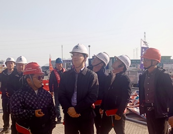 洪斌一行深入项目施工现场,实地检查工程建设进展情况,详细了解项目整体规划、质量安全管控措施,并认真听取项目负责人关于当前重难点问题的汇报。