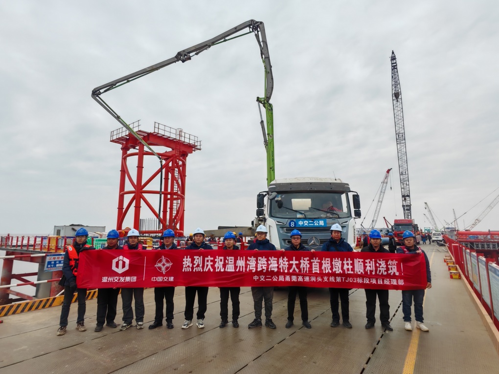 甬莞高速洞头支线温州湾跨海特大桥首件墩柱顺利浇筑