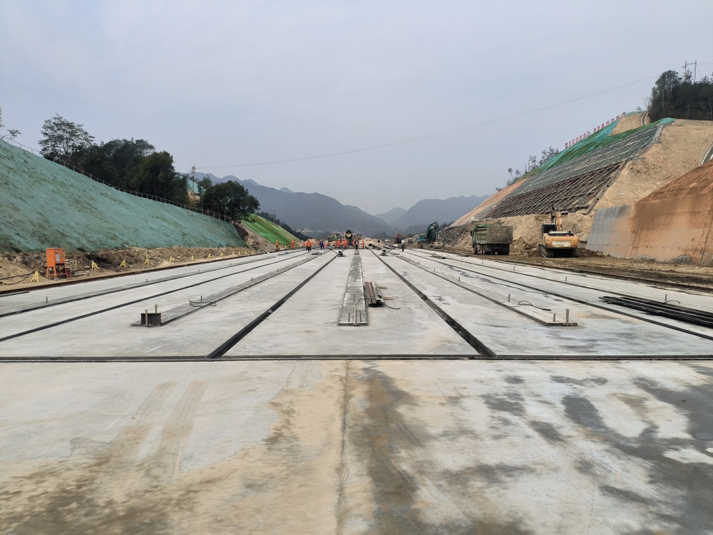 目前,预制场正有序推进梁场道路、场地硬化、台座浇筑、钢筋加工场安装等施工任务,计划4月底完成梁场建设任务。