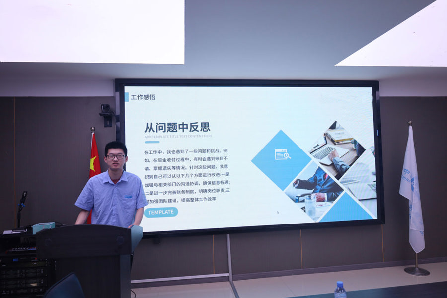 青春与专业的双向奔赴。汇报会上,新员工们以岗位实践为经,以成长感悟为纬,通过详实的数据分析、鲜活的案例照片和清晰的逻辑阐述,全方位展示入职苍泰10标项目以来的蜕变。他们或侃侃而谈,或娓娓道来,将专业知识与实际工作相结合,展现出扎实的专业素养和积极向上的精神风貌,工程部的张盛文用BIM模型演示施工方案,财务部的李昊天则通过各类图表展现财务管理思考。项目领导认真聆听每位新员工的汇报,时而提笔记录,时而点头赞许,并进行了细致点评,既肯定了他们的进步和成绩,也指出了存在的不足和改进方向,项目总工针对汇报中涉及的技术方案逐条分析,“这个支护设计考虑很全面,但建议补充极端天气下的应急预案”;安全总监则从风险管控角度提出,“现场隐患排查思考值得借鉴,可以推广开来。”
