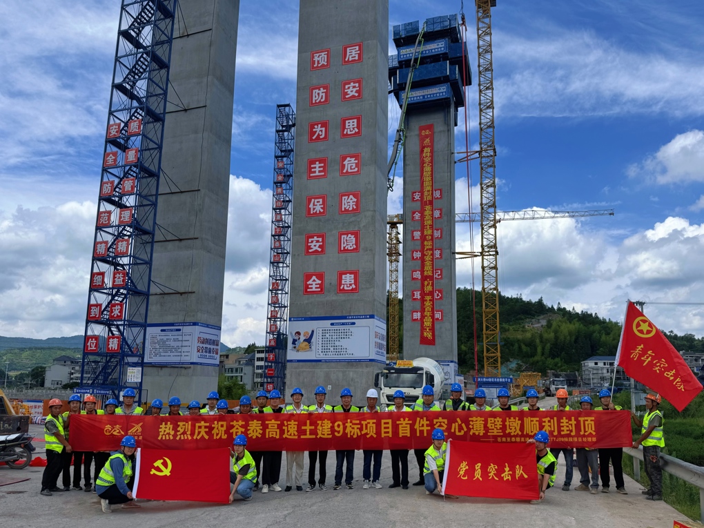 立功竞赛·比进度 | 苍泰高速9标项目首件空心薄壁墩顺利封顶