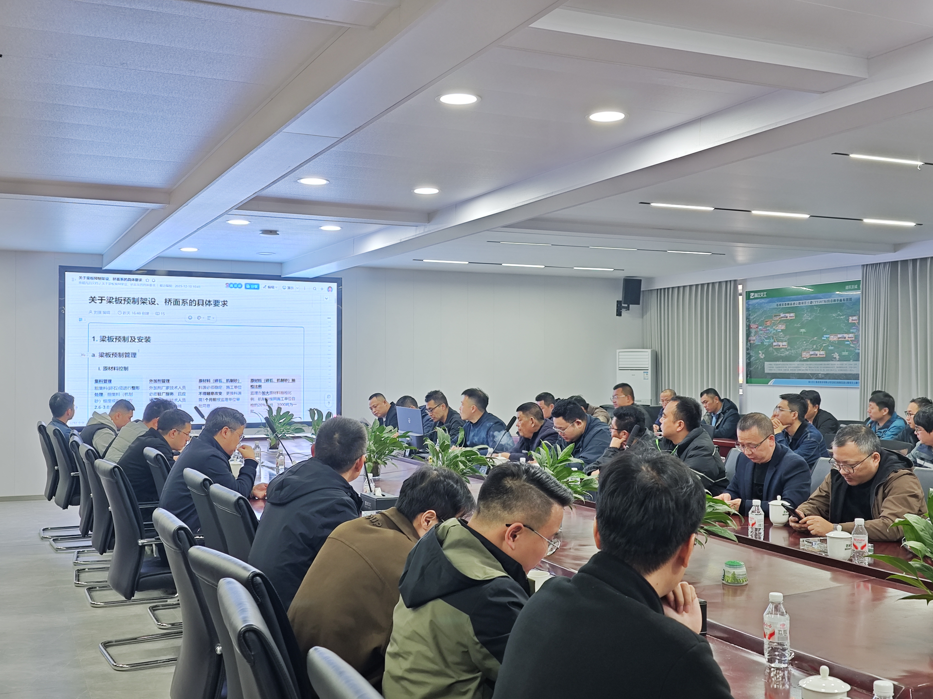 随后召开座谈交流会,围绕“如何高质量完成梁板架设和桥面系施工”这一主题展开了深入讨论,与会人员结合现场问题、施工工艺、安全施工等方面开展了多角度、深层次的现场交流与表态。