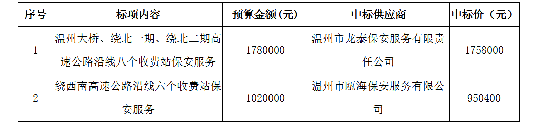 best365足球官网运营公司关于高速公路收费站点保安服务项目的采购结果公示