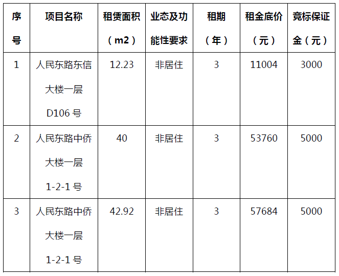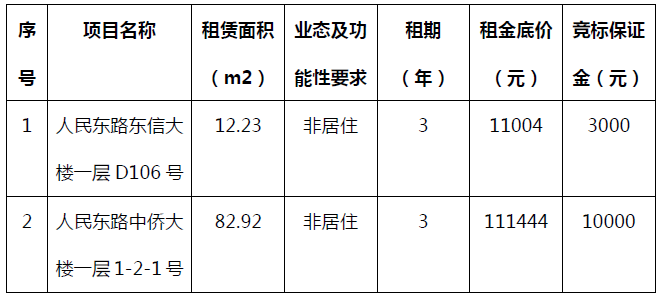 二、根据《温州市交通发展集团有限公司国有资产租赁管理办法》,经房开公司班子审议同意,将原标底项目人民东路中侨大楼一层1-2-1号(南)、人民东路中侨大楼一层1-2-1号(北)合并招租,调整为人民东路中侨大楼一层1-2-1号。