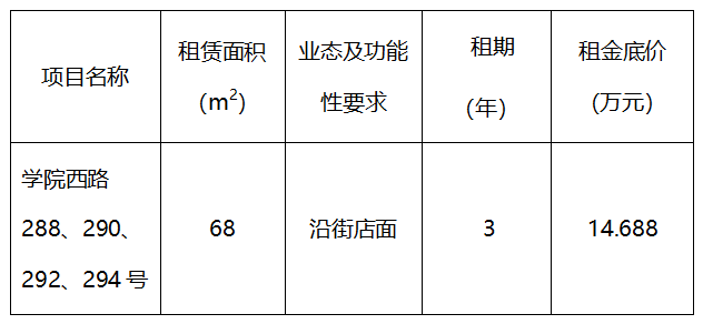 best365足球官网学院西路288、290、292、294号资产招租公告