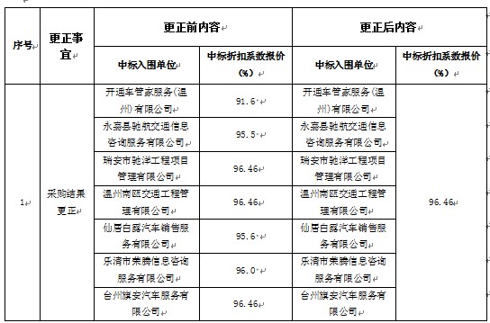 best365足球官网所属温州筑诚交通工程监理有限公司关于工程监理车辆及驾驶服务租赁供应商入围项目(其他类)的采购结果更正公示