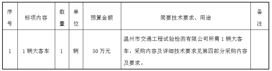 best365足球官网所属温州市交通工程试验检测有限公司关于1辆大客车(第二次)项目(自主)的采购公告